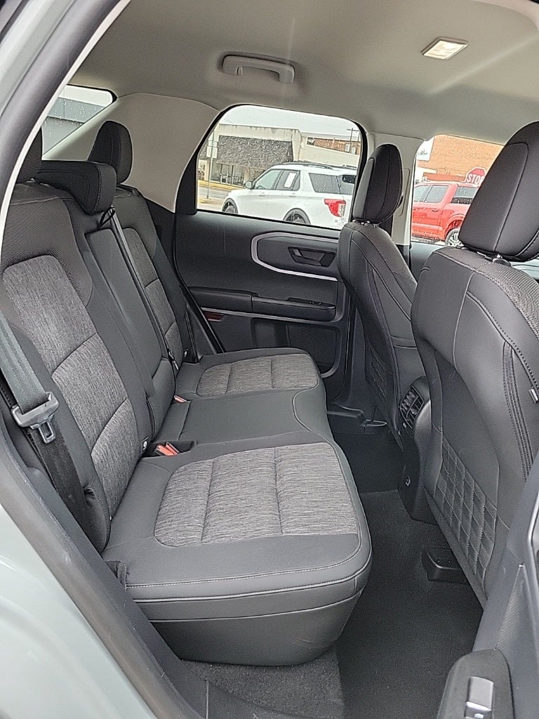 This 2022 Ford Bronco Sport Big Bend in Cactus Gray comes with the following features: 1.5L EcoBoost 8-Speed Automatic 4WD Equipment Group 200A, 3.80 Axle Ratio, 4-Wheel Disc Brakes, 4G LTE Wi-Fi Hotspot Credit, 6 Speakers, ABS brakes, Air Conditioning, Alloy wheels, AM/FM radio: SiriusXM, AM/FM Stereo, Auto High-beam Headlights, Automatic temperature control, Brake assist, Compass, Delay-off headlights, Driver door bin, Driver vanity mirror, Dual front impact airbags, Dual front side impact airbags, Electronic Stability Control, Emergency communication system: SYNC 3 911 Assist, Four wheel independent suspension, Front anti-roll bar, Front Bucket Seats, Front Center Armrest, Front reading lights, Fully automatic headlights, Heated door mirrors, Illuminated entry, Knee airbag, Low tire pressure warning, Occupant sensing airbag, Outside temperature display, Overhead airbag, Overhead console, Panic alarm, Passenger door bin, Passenger vanity mirror, Power door mirrors, Power steering, Power windows, Radio data system, Rear anti-roll bar, Rear reading lights, Rear seat center armrest, Rear window defroster, Rear window wiper, Remote keyless entry, Roof rack: rails only, Security system, SiriusXM Radio, Speed control, Speed-sensing steering, Speed-Sensitive Wipers, Split folding rear seat, Steering wheel mounted audio controls, SYNC 3 Communications & Entertainment System, SYNC 3/Apple CarPlay/Android Auto, Tachometer, Telescoping steering wheel, Tilt steering wheel, Traction control, Trip computer, Unique Cloth Front Bucket Seats, Variably intermittent wipers, and Wheels: 17 Carbonized Gray-Painted Aluminum.