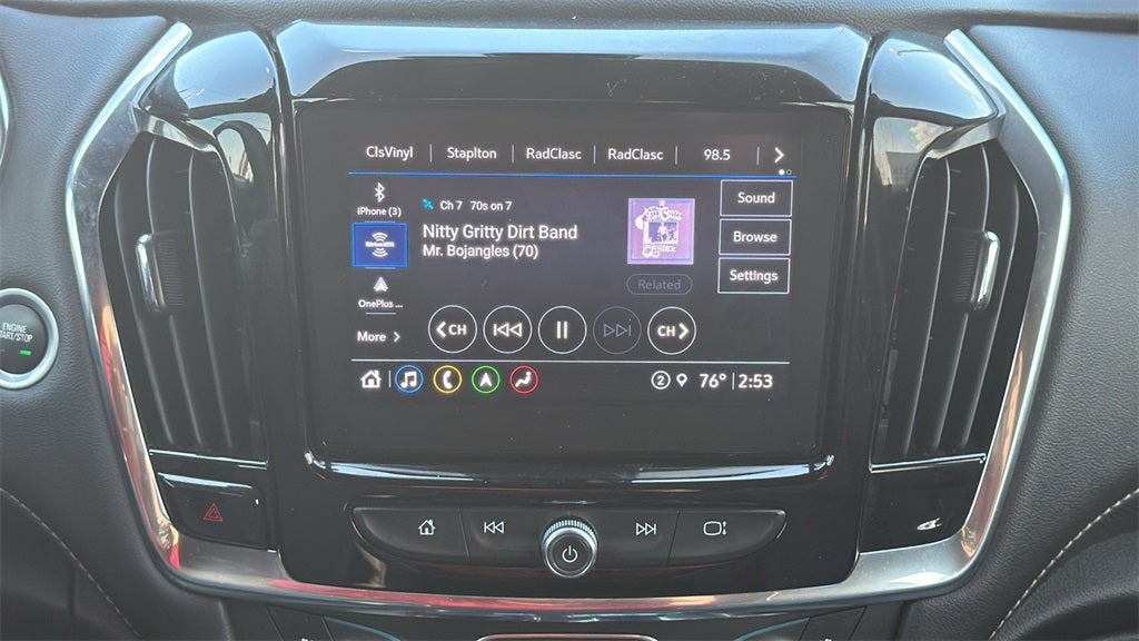 This 2023 Chevrolet Traverse Premier in Black Cherry Metallic comes with the following features: 3.6L V6 SIDI VVT 9-Speed Automatic FWD Front License Plate Bracket Mounting Package, Preferred Equipment Group 1LZ (Heated 2nd Row Outboard Position Seats, Heated Driver & Front Passenger Seats, and Ventilated Driver & Front Passenger Seats), 10 Speakers, 3.49 Axle Ratio, 3rd row seats: split-bench, 4-Wheel Disc Brakes, 6-Way Power Front Passenger Seat, 8-Way Power Driver Seat Adjuster, ABS brakes, Air Conditioning, Alloy wheels, AM/FM radio: SiriusXM with 360L, Apple CarPlay/Android Auto, Auto High-beam Headlights, Auto-dimming door mirrors, Auto-dimming Rear-View mirror, Automatic temperature control, Bose Premium 10-Speaker Audio System Feature, Brake assist, Bumpers: body-color, Compass, Delay-off headlights, Driver door bin, Driver vanity mirror, Dual front impact airbags, Dual front side impact airbags, Electronic Stability Control, Emergency communication system, Exterior Parking Camera Rear, Four wheel independent suspension, Front anti-roll bar, Front Bucket Seats, Front Center Armrest, Front dual zone A/C, Front Passenger 2-Way Power Lumbar, Front reading lights, Fully automatic headlights, Garage door transmitter, Heated door mirrors, Heated front seats, Heated rear seats, Heated steering wheel, Illuminated entry, Leather steering wheel, Low tire pressure warning, Memory seat, Navigation System, Occupant sensing airbag, Outside temperature display, Overhead airbag, Overhead console, Panic alarm, Passenger door bin, Passenger vanity mirror, Perforated Leather-Appointed Seat Trim, Power door mirrors, Power Driver Lumbar Control, Power driver seat, Power Liftgate, Power passenger seat, Power steering, Power windows, Premium audio system: Chevrolet Infotainment 3 Plus, Radio data system, Radio: Chevrolet Infotainment 3 Plus System w/Navi, Rear air conditioning, Rear anti-roll bar, Rear reading lights, Rear window defroster, Rear window wiper, Remote keyless entry, Security system, SiriusXM w/360L, Speed control, Speed-sensing steering, Spoiler, Steering wheel memory, Steering wheel mounted audio controls, Tachometer, Telescoping steering wheel, Tilt steering wheel, Traction control, Trip computer, Turn signal indicator mirrors, Variably intermittent wipers, Ventilated front seats, Voltmeter, and Wheels: 20 Metallic Machined-Face Aluminum.