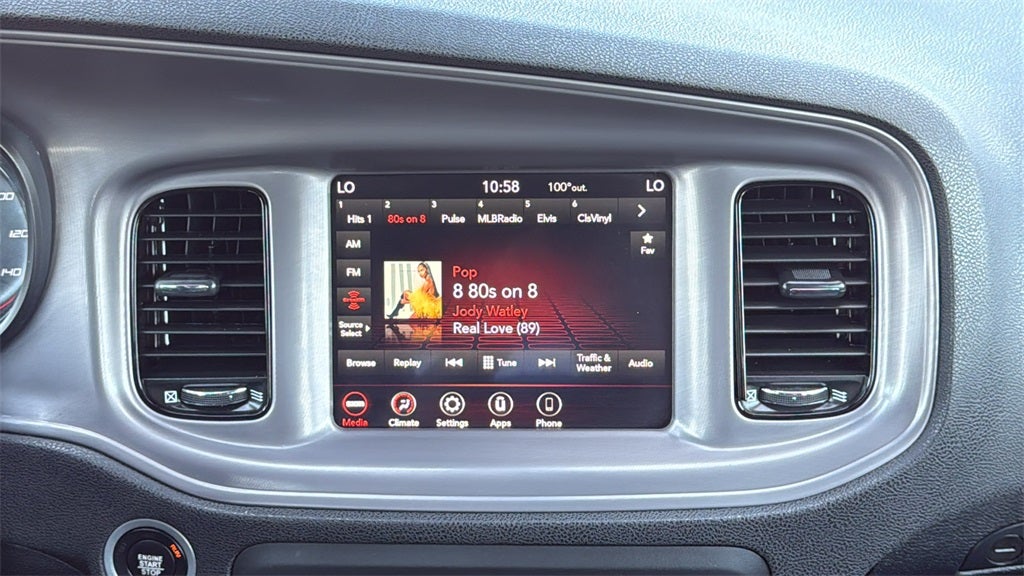 This 2023 Dodge Charger GT in Granite Crystal Metallic Clearcoat comes with the following features: 3.6L V6 24V VVT 8-Speed Automatic RWD Blacktop Package (Black 1-Piece Performance Spoiler, Black Badge, Black Dodge Grille Badge, Gloss Black I/P Cluster Trim Rings, Rhombi 2-Pc Wheel Center Cap, Satin Black Charger Decklid Badge, Satin Black Dodge Tail Lamp Badge, and Wheels: 20 x 8 Black Noise Painted), Quick Order Package 2EH, Black Cloth, 1-Yr SiriusXM Guardian Trial, 2-Piece Shark Fin Antenna, 4-Wheel Disc Brakes, 4G LTE Wi-Fi Hot Spot, 6 Speakers, 8.4 Touchscreen Display, ABS brakes, Air Conditioning, Alloy wheels, AM/FM radio: SiriusXM, Anti-whiplash front head restraints, Apple CarPlay, Apple CarPlay/Android Auto, Auto-dimming Rear-View mirror, Automatic temperature control, Brake assist, Bumpers: body-color, Cloth Performance Seats, Compass, Delay-off headlights, Driver door bin, Driver vanity mirror, Dual front impact airbags, Dual front side impact airbags, Electronic Stability Control, Emergency communication system: SiriusXM Guardian, For Details, Visit DriveUconnect.com, Four wheel independent suspension, Front anti-roll bar, Front Bucket Seats, Front Center Armrest, Front dual zone A/C, Front License Plate Bracket, Front reading lights, Fully automatic headlights, Garage door transmitter: HomeLink, Google Android Auto, GPS Antenna Input, HD Radio, Heated door mirrors, Illuminated entry, Integrated Center Stack Radio, Integrated Voice Command w/Bluetooth®, Knee airbag, Leather Shift Knob, Low tire pressure warning, Manufacturer's Statement of Origin, Media Hub (2 USB, AUX), Occupant sensing airbag, Outside temperature display, Overhead airbag, Overhead console, Panic alarm, ParkView Rear Back-Up Camera, Passenger door bin, Passenger vanity mirror, Power 2-Way Driver Lumbar Adjust, Power 8-Way Driver Seat, Power door mirrors, Power driver seat, Power steering, Power windows, Radio: Uconnect 4C w/8.4 Display, Rear anti-roll bar, Rear Armrest w/Cupholder Seat, Rear reading lights, Rear seat center armrest, Rear window defroster, Remote keyless entry, Speed control, Speed-Sensitive Wipers, Split folding rear seat, Spoiler, Steering wheel mounted audio controls, Tachometer, Telescoping steering wheel, Tilt steering wheel, Traction control, Trip computer, USB Host Flip, Variably intermittent wipers, and Wheels: 20 x 8 Satin Carbon PainteD.