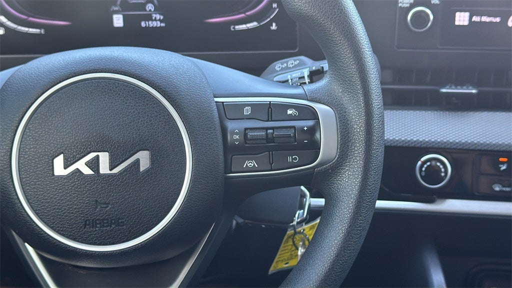 This 2023 Kia Sportage LX in Steel Gray comes with the following features: I4 8-Speed Automatic AWD AWD, 17 Alloy Wheels, 4-Wheel Disc Brakes, 6 Speakers, ABS brakes, Air Conditioning, Alloy wheels, AM/FM radio, Auto High-beam Headlights, Axle Ratio: 3.648, Brake assist, Bumpers: body-color, Carpeted Floor Mats, Cloth Seat Trim, Delay-off headlights, Driver door bin, Driver vanity mirror, Dual front impact airbags, Dual front side impact airbags, Electronic Stability Control, Four wheel independent suspension, Front anti-roll bar, Front Bucket Seats, Front Center Armrest, Fully automatic headlights, Heated door mirrors, Heated front seats, Illuminated entry, Low tire pressure warning, Occupant sensing airbag, Outside temperature display, Overhead airbag, Overhead console, Panic alarm, Passenger door bin, Passenger vanity mirror, Power door mirrors, Power steering, Power windows, Radio: AM/FM/HD Audio System, Rear anti-roll bar, Rear seat center armrest, Rear window defroster, Rear window wiper, Remote keyless entry, Security system, Speed control, Speed-sensing steering, Split folding rear seat, Spoiler, Steering wheel mounted audio controls, Tachometer, Telescoping steering wheel, Tilt steering wheel, Traction control, Trip computer, and Variably intermittent wipers.