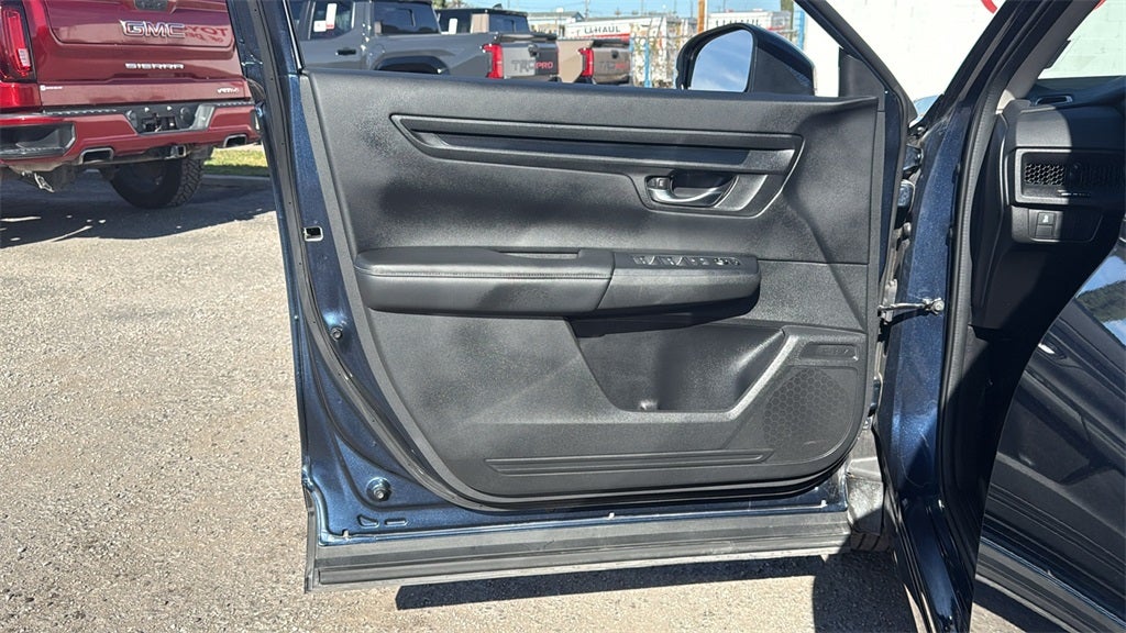 This 2024 Honda CR-V EX in Blue comes with the following features: 1.5L I4 DOHC 16V CVT FWD 4-Wheel Disc Brakes, 5.64 Axle Ratio, 6 Speakers, ABS brakes, Adaptive Cruise Control: Adaptive Cruise Control (ACC) with Low-Speed Follow, Air Conditioning, Alloy wheels, Apple CarPlay/Android Auto, Auto High-beam Headlights, Automatic temperature control, Blind Spot Information (BSI) System warning, Brake assist, Bumpers: body-color, Cloth Seat Trim, Compass, Delay-off headlights, Driver door bin, Driver vanity mirror, Dual front impact airbags, Dual front side impact airbags, Electronic Stability Control, Exterior Parking Camera Rear, Four wheel independent suspension, Front anti-roll bar, Front Bucket Seats, Front Center Armrest, Front dual zone A/C, Front reading lights, Fully automatic headlights, Heated door mirrors, Heated Front Bucket Seats, Heated front seats, Illuminated entry, Knee airbag, Low tire pressure warning, Occupant sensing airbag, Outside temperature display, Overhead airbag, Overhead console, Panic alarm, Passenger door bin, Passenger vanity mirror, Power door mirrors, Power driver seat, Power moonroof, Power steering, Power windows, Radio data system, Radio: 240-Watt AM/FM Audio System, Rear anti-roll bar, Rear reading lights, Rear seat center armrest, Rear side impact airbag, Rear window defroster, Rear window wiper, Remote keyless entry, Security system, Speed control, Speed-sensing steering, Speed-Sensitive Wipers, Split folding rear seat, Spoiler, Steering wheel mounted audio controls, Tachometer, Telescoping steering wheel, Tilt steering wheel, Traction control, Trip computer, Turn signal indicator mirrors, Variably intermittent wipers, and Wheels: 18 Sparkle Silver Metallic.