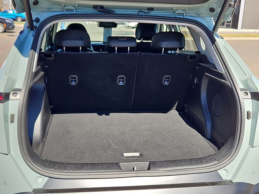This 2024 Hyundai Kona Limited in Mirage Green comes with the following features: I4 8-Speed Automatic FWD Option Group 01, 3.510 Axle Ratio, 4-Wheel Disc Brakes, 8 Speakers, ABS brakes, Air Conditioning, Alloy wheels, AM/FM radio: SiriusXM, Apple CarPlay & Android Auto, Auto High-beam Headlights, Auto-dimming Rear-View mirror, Automatic temperature control, Brake assist, Bumpers: body-color, Column-Mounted Shift-By-Wire, Delay-off headlights, Driver door bin, Driver vanity mirror, Dual front impact airbags, Dual front side impact airbags, Electronic Stability Control, Emergency communication system: Bluelink+, Front anti-roll bar, Front Bucket Seats, Front Center Armrest, Front dual zone A/C, Front reading lights, Front wheel independent suspension, Fully automatic headlights, Garage door transmitter: HomeLink, H-Tex Leatherette Seat Trim, Heated & Ventilated Front Bucket Seats, Heated door mirrors, Heated front seats, Heated steering wheel, Illuminated entry, Leather Shift Knob, Leather steering wheel, Low tire pressure warning, Navigation System, Occupant sensing airbag, Outside temperature display, Overhead airbag, Panic alarm, Passenger door bin, Passenger vanity mirror, Power door mirrors, Power driver seat, Power Liftgate, Power moonroof, Power steering, Power windows, Radio: AM/FM/HD Radio/SiriusXM Audio System, Rear seat center armrest, Rear window defroster, Rear window wiper, Remote keyless entry, Security system, Speed control, Speed-sensing steering, Split folding rear seat, Spoiler, Steering wheel mounted audio controls, Tachometer, Telescoping steering wheel, Tilt steering wheel, Traction control, Trip computer, Turn signal indicator mirrors, Variably intermittent wipers, Ventilated front seats, and Wheels: 19 x 7.5J Glossy Black Alloy.