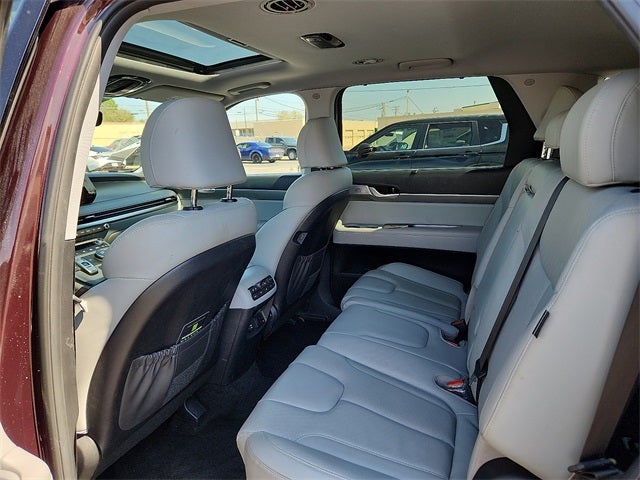 This 2024 Hyundai Palisade SEL in Sierra Burgundy comes with the following features: V6 8-Speed Automatic with SHIFTRONIC FWD 8-Passenger Bench Seating (115-Volt AC Power Outlet, 12.3 Full-Digital Multi-Information Display, 3rd Row USB Outlets, Acoustic Rear Side Glass, Blind-Spot View Monitor, Driver 4-Way Power Lumbar Support, Forward Collision Avoidance Assist, Front Parking Sensors, harman/kardon® Audio System, Heated 2nd Row Seats, Heated Steering Wheel, Highway Driving Assist 2, HomeLink, Hydro-Phobic Front Side Glass, Integrated Memory Driver Seat & Mirrors, Option Group 02, Passenger Talk (In-Car Intercom), Power Sunroof, Rear Side Window Sunshades, Surround View Monitor, Ventilated Front & 2nd-Row Seats, and Wheels: 20 x 7.5J Alloy), Premium Package, FWD, Navigation System, 3.510 Axle Ratio, 3rd row seats: split-bench, 4-Wheel Disc Brakes, 6 Speakers, ABS brakes, Air Conditioning, Alloy wheels, AM/FM radio: SiriusXM, Apple CarPlay & Android Auto, Auto High-beam Headlights, Auto-dimming door mirrors, Auto-dimming Rear-View mirror, Automatic temperature control, Brake assist, Bumpers: body-color, Delay-off headlights, Driver door bin, Driver vanity mirror, Dual front impact airbags, Dual front side impact airbags, Electronic Stability Control, Emergency communication system, Exterior Parking Camera Rear, Four wheel independent suspension, Front anti-roll bar, Front Bucket Seats, Front Center Armrest, Front dual zone A/C, Front reading lights, Fully automatic headlights, H-Tex Leatherette Seat Trim, Heated door mirrors, Heated Front Bucket Seats, Heated front seats, Illuminated entry, Knee airbag, Low tire pressure warning, Occupant sensing airbag, Outside temperature display, Overhead airbag, Overhead console, Panic alarm, Passenger door bin, Passenger vanity mirror, Power door mirrors, Power driver seat, Power Liftgate, Power passenger seat, Power steering, Power windows, Radio data system, Radio: AM/FM/MP3 Audio System, Rear air conditioning, Rear anti-roll bar, Rear audio controls, Rear reading lights, Rear side impact airbag, Rear window defroster, Rear window wiper, Reclining 3rd row seat, Remote keyless entry, Security system, Speed control, Speed-sensing steering, Split folding rear seat, Spoiler, Steering wheel mounted audio controls, Tachometer, Telescoping steering wheel, Tilt steering wheel, Traction control, Trip computer, Turn signal indicator mirrors, Variably intermittent wipers, and Wheels: 18 x 7.5J Painted Finish Alloy.