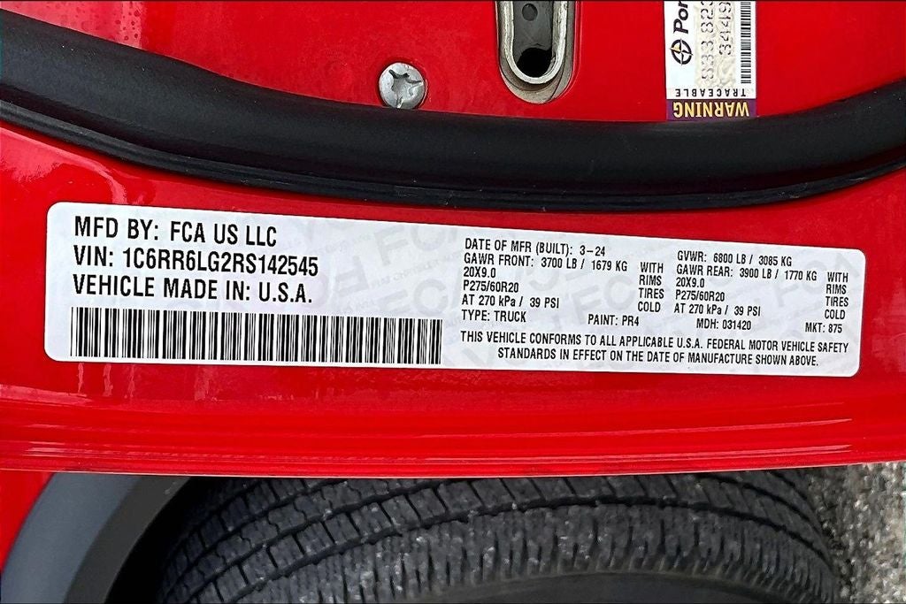 This 2024 Ram 1500 Classic Warlock in Flame Red Clearcoat comes with the following features: 3.6L V6 24V VVT 8-Speed Automatic RWD Quick Order Package 29F Warlock (B-Pillar Black Out, Bi-Function Halogen Projector Headlamps, Black Exterior Truck Badging, Black Grille w/RAM Lettering, Black Headlamp Filler Panel, Black Powder Coated Front Bumper, Black Powder Coated Rear Bumper, Black RAM Head Tailgate Badge, Black Wheel Flares, Front Wheel Well Liners, ParkSense Rear Park Assist System, Semi-Gloss Black Hub, Sport Tail Lamps, Warlock, Warlock Interior Accents, and Wheels: 20 x 9 High Gloss Black Aluminum), 17 x 7 Aluminum Wheels, 3.21 Rear Axle Ratio, 4-Wheel Disc Brakes, 40/20/40 Split Bench Seat, 6 Speakers, ABS brakes, Active Grille Shutters, Air Conditioning, Alloy wheels, AM/FM radio: SiriusXM, Audio Input Jack for Mobile Devices, Black Exterior Mirrors, Brake assist, Bumpers: chrome, Center Hub, Cloth 40/20/40 Bench Seat, Compass, Delay-off headlights, Driver door bin, Dual front impact airbags, Dual front side impact airbags, Electronic Shift, Electronic Stability Control, Exterior Mirrors w/Heating Element, Front anti-roll bar, Front Armrest w/3 Cupholders, Front Center Armrest w/Storage, Front License Plate Bracket, Front reading lights, Front wheel independent suspension, Fully automatic headlights, GPS Antenna Input, Heated door mirrors, Illuminated entry, Integrated Voice Command w/Bluetooth®, Low tire pressure warning, Manufacturer's Statement of Origin, Occupant sensing airbag, Outside temperature display, Overhead airbag, Overhead console, Panic alarm, ParkView Rear Back-Up Camera, Passenger door bin, Passenger vanity mirror, Power door mirrors, Power steering, Power windows, Radio data system, Radio: Uconnect 3 w/5 Display, Rear anti-roll bar, Rear seat center armrest, Rear step bumper, Remote keyless entry, Remote USB Port, Remote USB Port - Charge Only, Speed control, Storage Tray, Tachometer, Tilt steering wheel, Tip Start, Traction control, Trip computer, Variably intermittent wipers, and Voltmeter.
