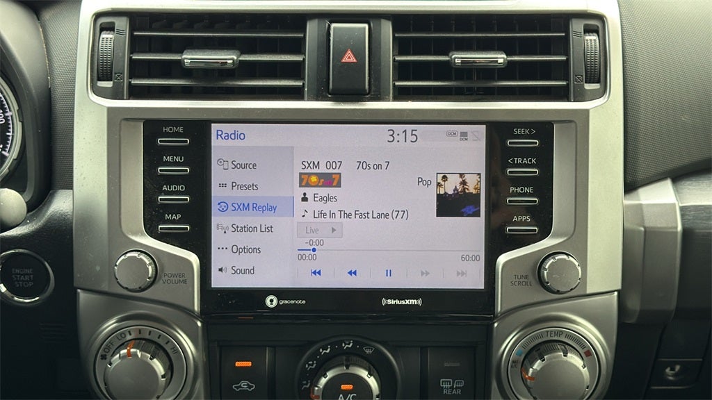 This 2024 Toyota 4Runner TRD Sport in Blue comes with the following features: 4.0L V6 DOHC 24V 5-Speed with ECT 4WD 4WD, Black/Graphite Artificial Leather, 3.727 Axle Ratio, 4-Wheel Disc Brakes, 8 Speakers, ABS brakes, Air Conditioning, Alloy wheels, AM/FM radio: SiriusXM, Anti-whiplash front head restraints, Apple CarPlay/Android Auto, Auto High-beam Headlights, Black Roof Rails, Brake assist, Bumpers: body-color, Driver door bin, Driver vanity mirror, Dual front impact airbags, Dual front side impact airbags, Electronic Stability Control, Emergency communication system: Safety Connect (1-year trial), Exterior Parking Camera Rear, Front anti-roll bar, Front Bucket Seats, Front Center Armrest, Front fog lights, Front reading lights, Front wheel independent suspension, Heated door mirrors, Illuminated entry, Knee airbag, Leather Shift Knob, Leather steering wheel, Low tire pressure warning, Occupant sensing airbag, Outside temperature display, Overhead airbag, Overhead console, Panic alarm, Passenger door bin, Passenger vanity mirror, Power door mirrors, Power driver seat, Power steering, Power windows, Radio: Audio, Rear anti-roll bar, Rear seat center armrest, Rear window defroster, Rear window wiper, Remote keyless entry, Security system, Shift Knob, SofTex Seat Trim, Speed control, Speed-sensing steering, Split folding rear seat, Spoiler, Steering wheel mounted audio controls, Tachometer, Telescoping steering wheel, Tilt steering wheel, Traction control, TRD Sport Badge, TRD Sport Carpet Floor Mats, Trip computer, Variably intermittent wipers, and Wheels: 20 Unique Dual 6-Spoke Alloy.