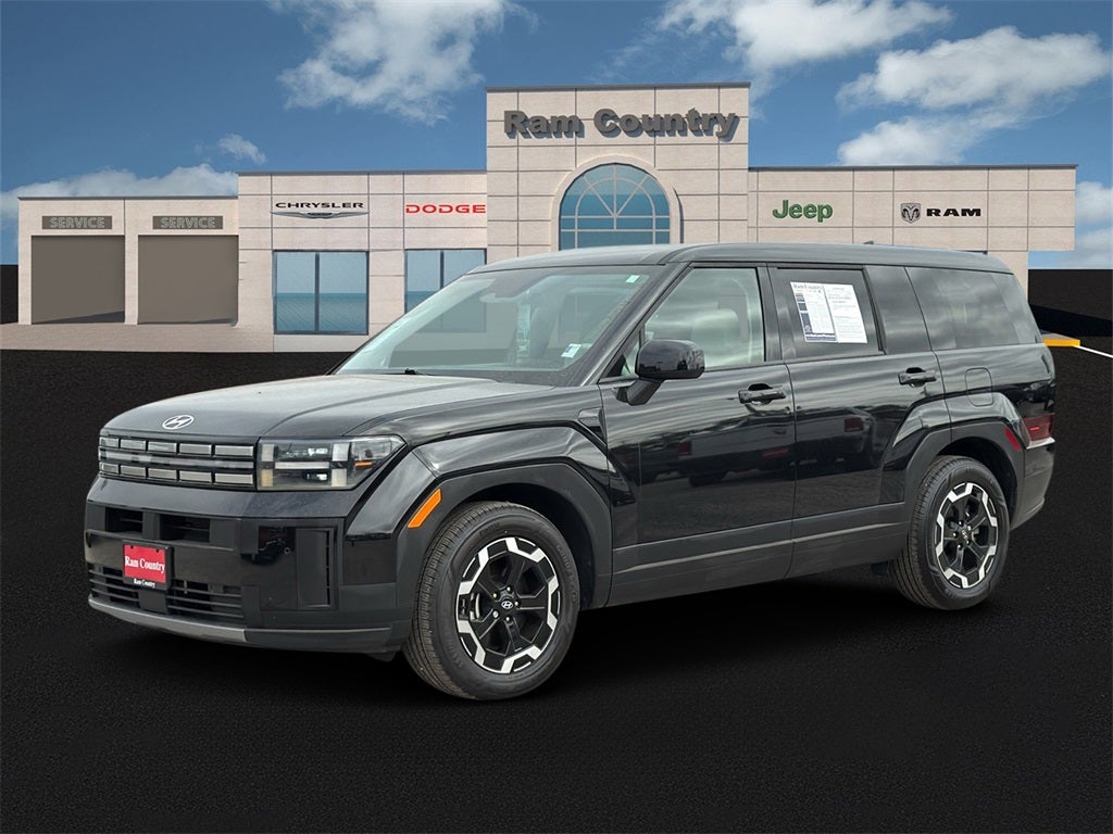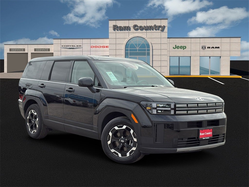 This 2025 Hyundai Santa Fe SE in Phantom Black comes with the following features: 2.5L I4 Shiftronic FWD Option Group 01, Gray Cloth, 18 x 7.5J Alloy Wheels, Brake assist, Cargo Cover, Dual front side impact airbags, Front reading lights, Low tire pressure warning, Outside temperature display, Overhead airbag, Power Liftgate, Power steering, Radio: AM/FM/HD Display Audio, Rear seat center armrest, Split folding rear seat, Steering wheel mounted audio controls, Tachometer, Traction control, Trip computer, 3rd row seats: bench, 4-Wheel Disc Brakes, 6 Speakers, ABS brakes, Air Conditioning, Alloy wheels, AM/FM radio: SiriusXM, Apple CarPlay & Android Auto, Auto High-beam Headlights, Bumpers: body-color, Cargo Blocks, Cargo Net, Carpeted Floor Mats, Delay-off headlights, Driver door bin, Driver vanity mirror, Dual front impact airbags, Electronic Stability Control, Emergency communication system, Exterior Parking Camera Rear, Four wheel independent suspension, Front anti-roll bar, Front Bucket Seats, Front Center Armrest, Fully automatic headlights, Heated door mirrors, Illuminated entry, Knee airbag, Leather steering wheel, Occupant sensing airbag, Overhead console, Panic alarm, Passenger door bin, Passenger vanity mirror, Power door mirrors, Power windows, Rear anti-roll bar, Rear side impact airbag, Rear window defroster, Rear window wiper, Remote keyless entry, Roadside Assistance Kit, Security system, Severe Weather Kit, Speed control, Speed-sensing steering, Spoiler, Telescoping steering wheel, Tilt steering wheel, Variably intermittent wipers, and YES Essentials Stain-Resistant Cloth Seat Trim.