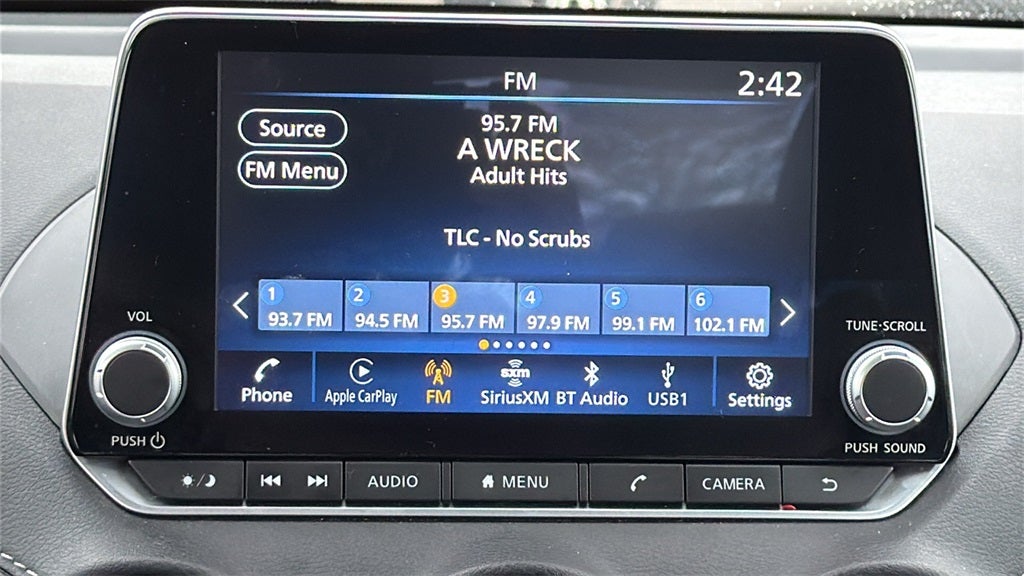 - Radio: AM/FM w/RDS/MP3/Aux-In -inc: 6 speakers plus 2 tweeters in A-pillar, 8" color display w/multi-touch control, streaming audio via Bluetooth®, Bluetooth® hands-free phone system, hands-free text messaging assistant, Siri Eyes Free, Google Assistant voice recognition w/Apple CarPlay and Android Auto, NissanConnect, (1) front USB connection port (type A), (1) additional front USB (type C), (1) charge-only USB (type A) center console and SiriusXM radio w/advanced audio features